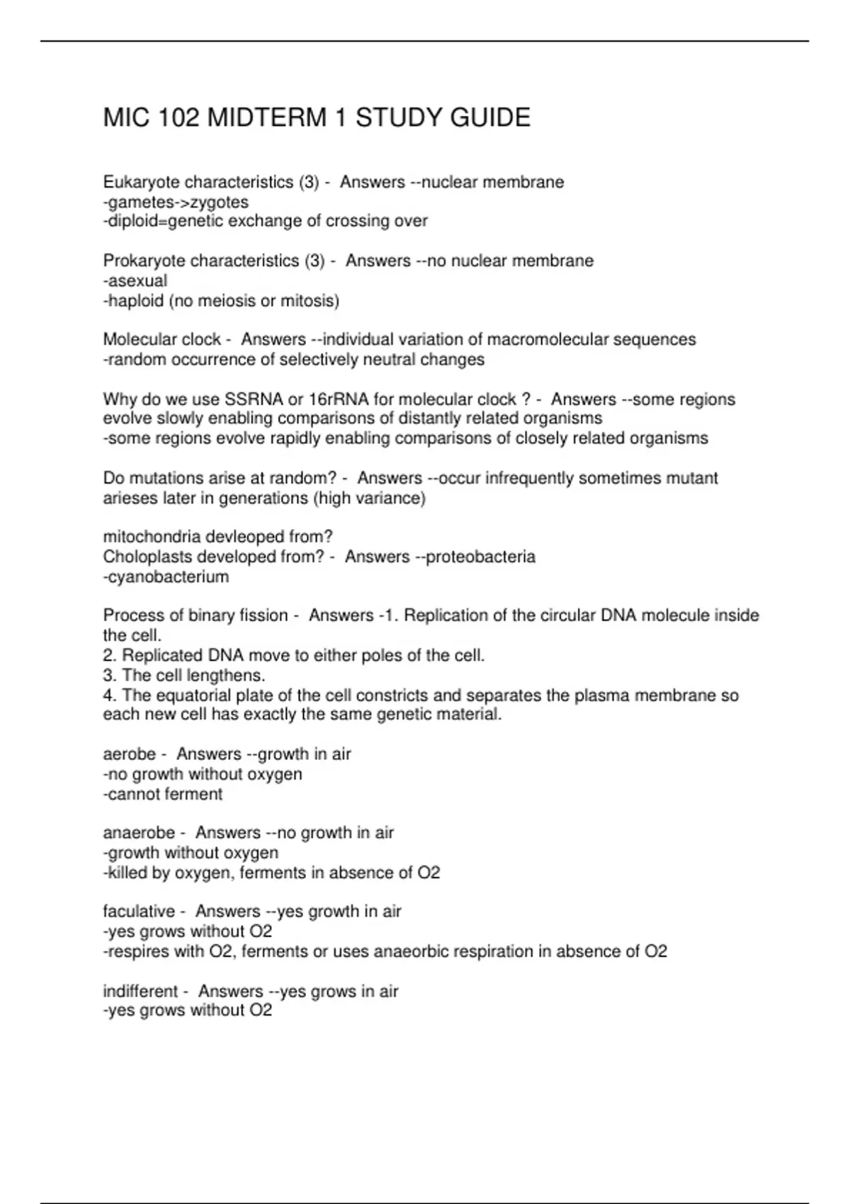 MIC 102 MIDTERM 1 STUDY GUIDE