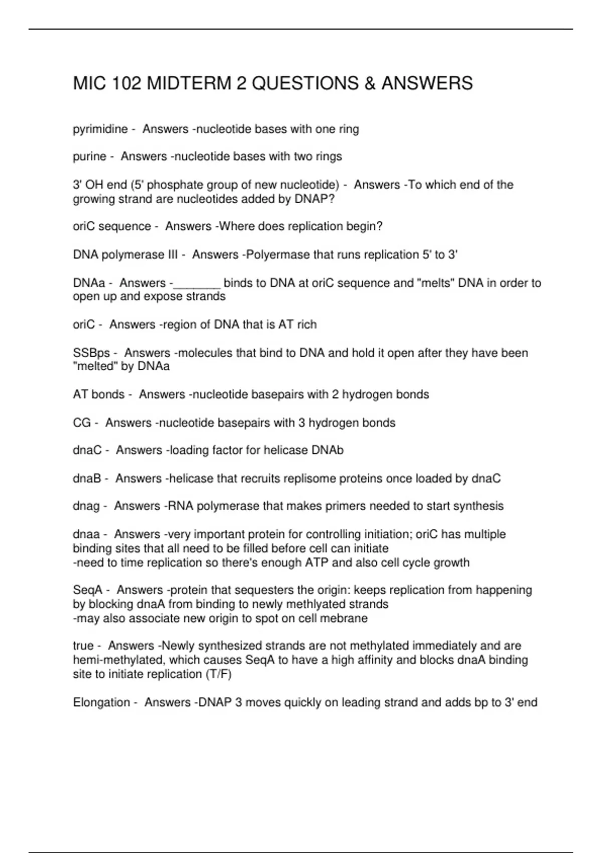 oriC - Answers -region of DNA that is AT rich