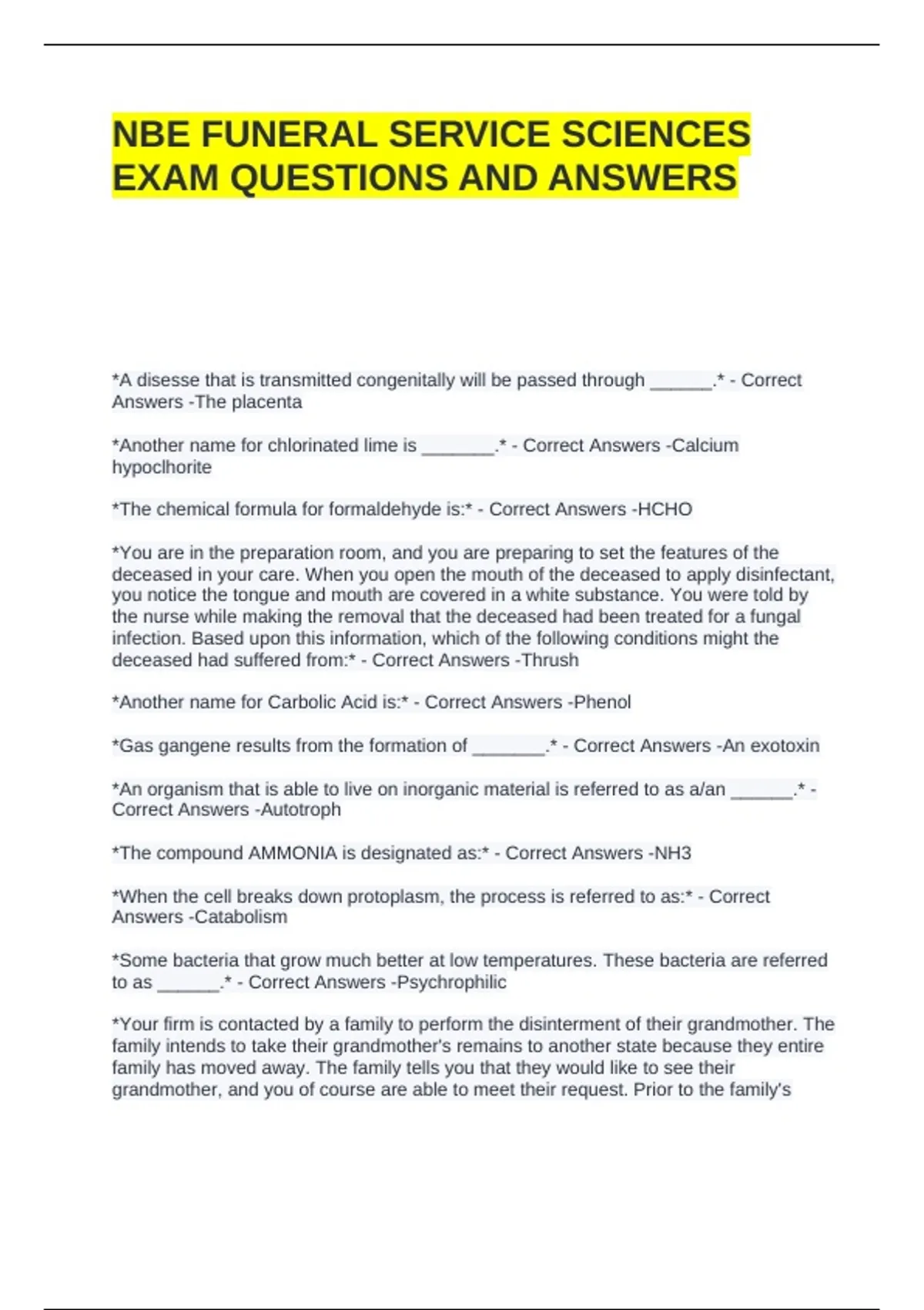 NBE FUNERAL SERVICE SCIENCES EXAM QUESTIONS AND ANSWERS (GRADED A)