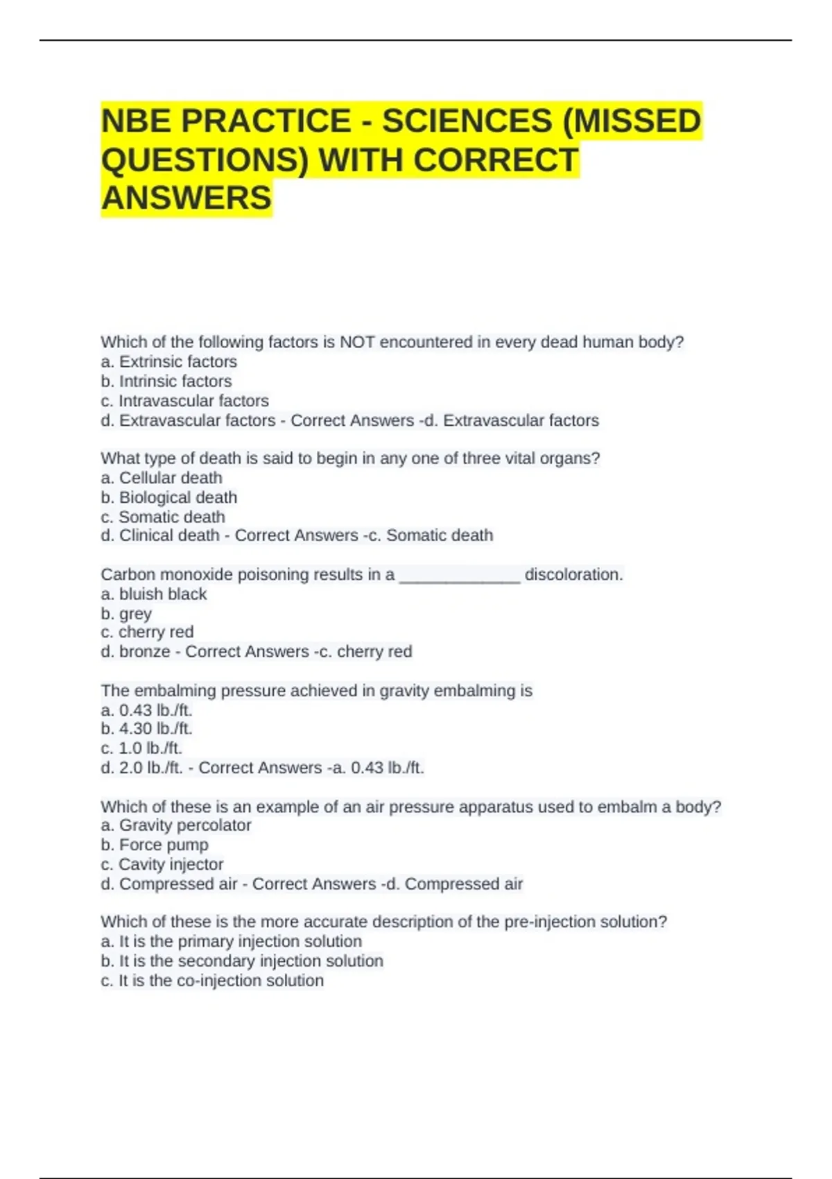 NBE PRACTICE - SCIENCES (MISSED QUESTIONS) WITH CORRECT ANSWERS