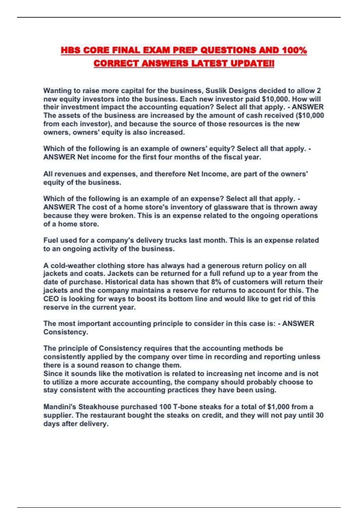 HBS CORE FINAL EXAM PREP QUESTIONS AND 100%