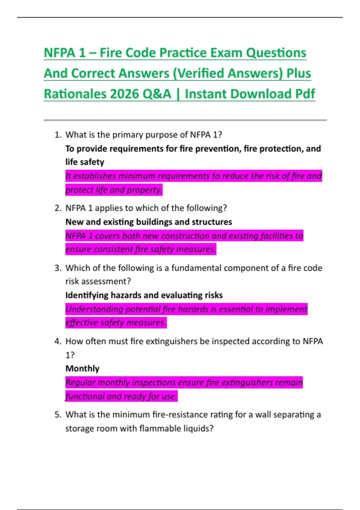 NFPA 1 – Fire Code Practice Exam Questions