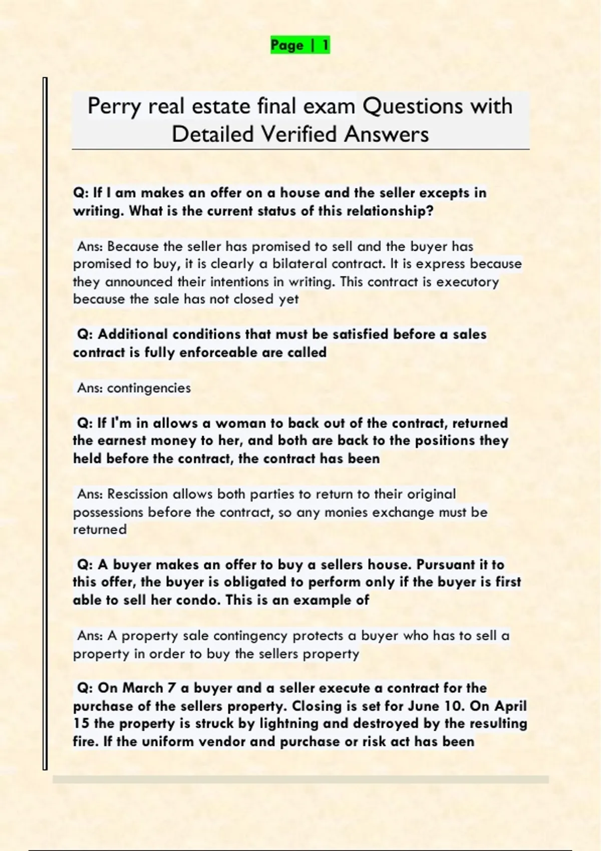 Perry Real Estate Final Exam 2026/2027 | Practice Questions & Answers
