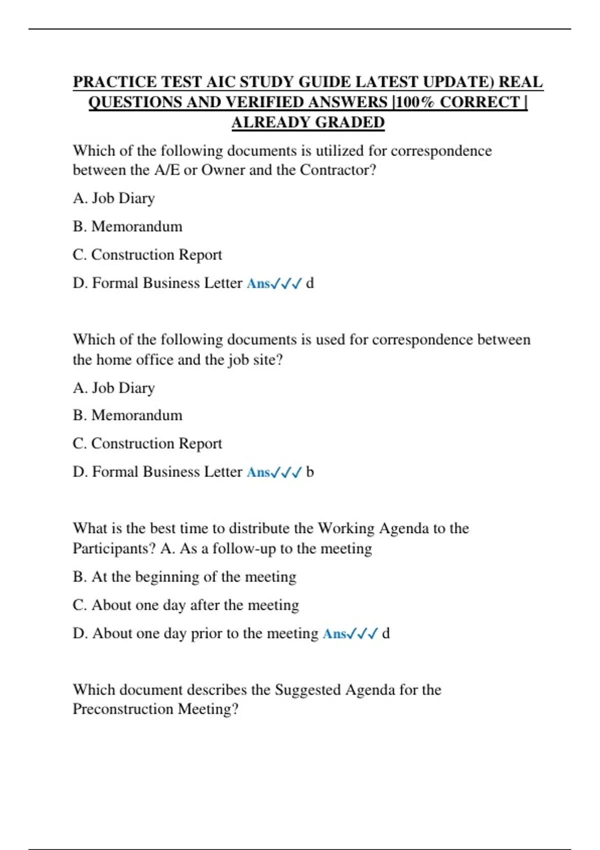 PRACTICE TEST AIC STUDY GUIDE LATEST UPDATE) REAL