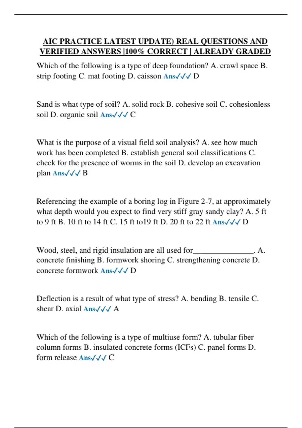 concrete formwork Ans✓✓✓ D