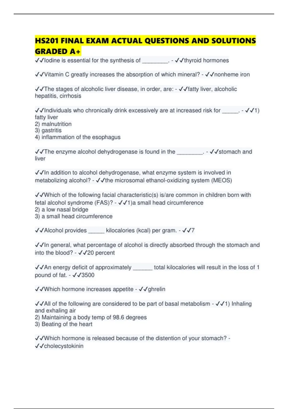 ✔✔Alcohol provides _____ kilocalories (kcal) per gram. - ✔✔7
