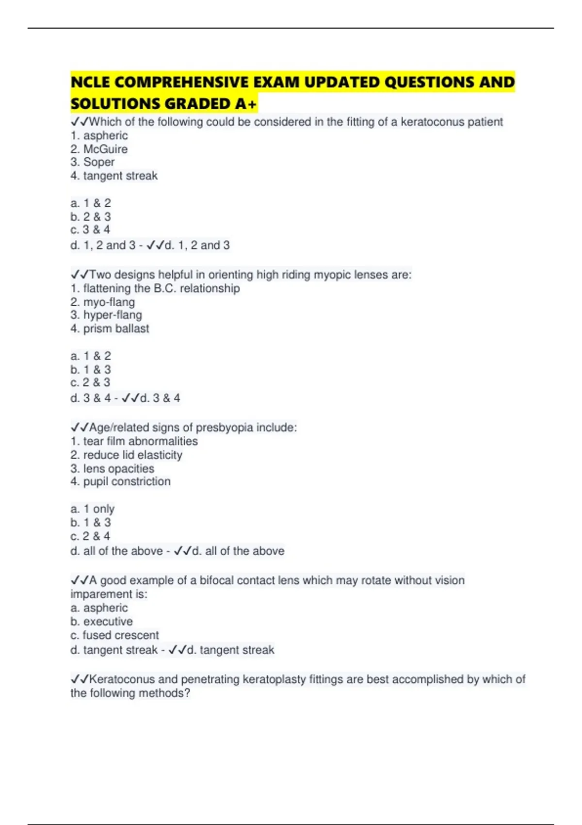 NCLE COMPREHENSIVE EXAM UPDATED QUESTIONS AND