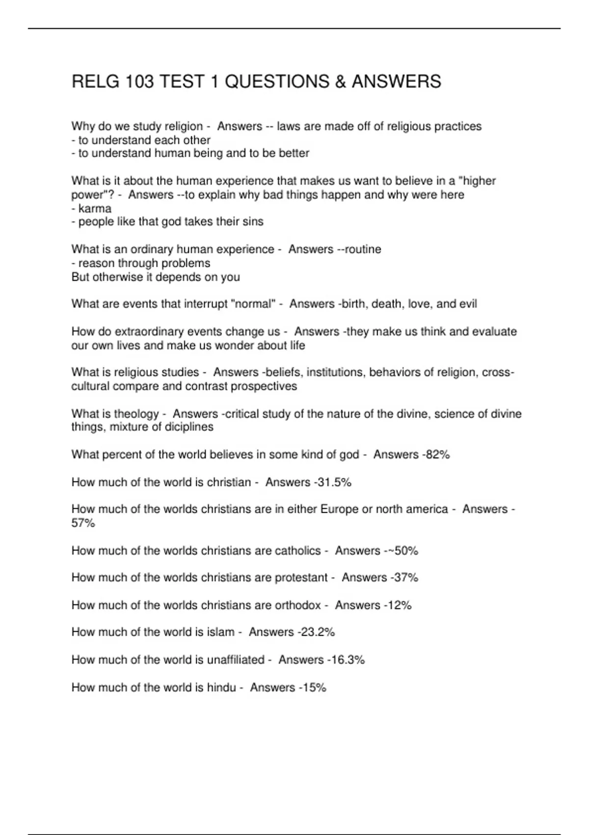RELG 103 TEST 1 QUESTIONS & ANSWERS