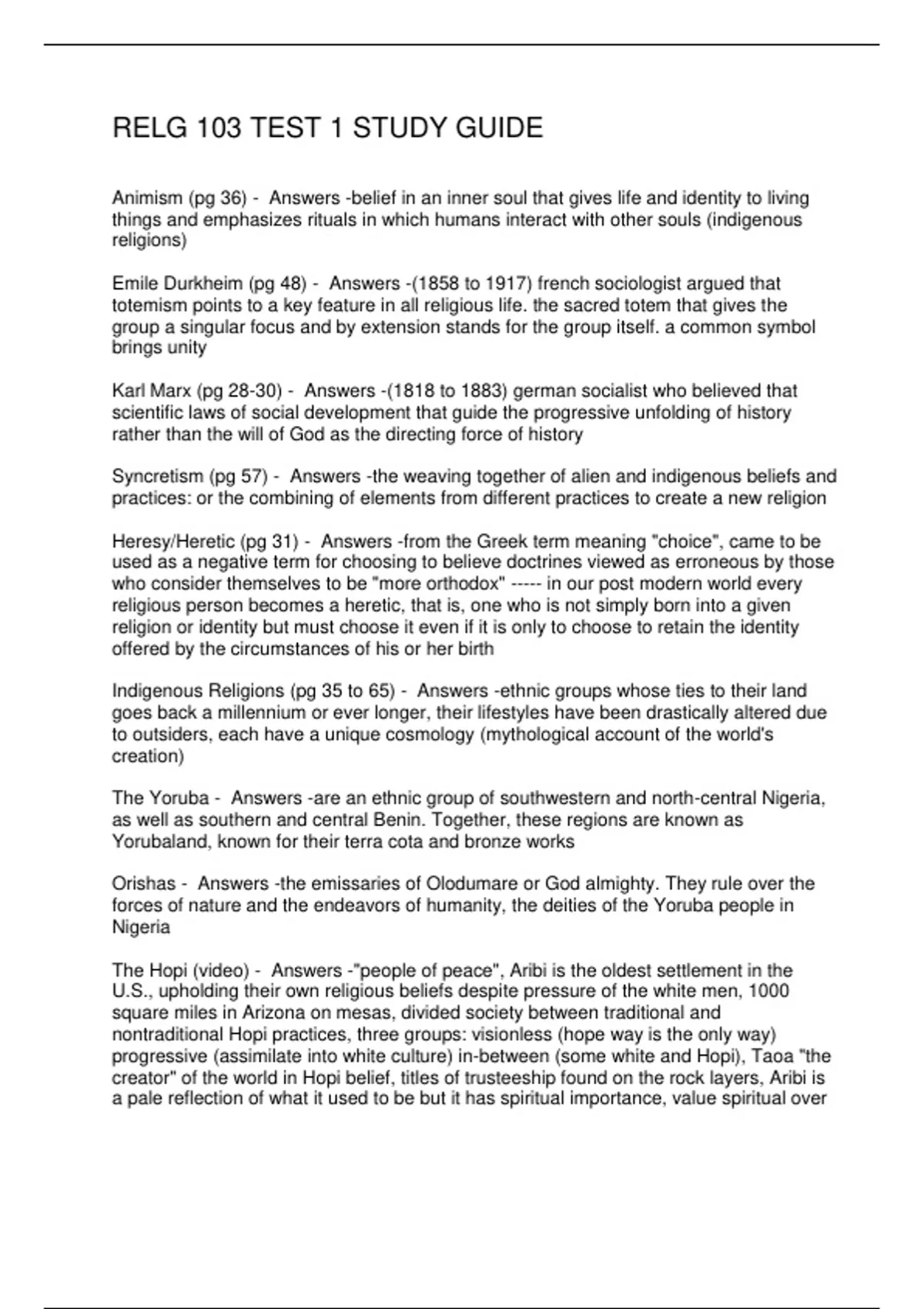 Animism (pg 36) - Answers -belief in an inner soul that gives life and identity to living
