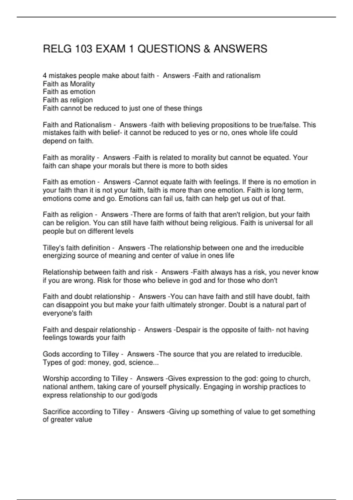 RELG 103 EXAM 1 QUESTIONS & ANSWERS