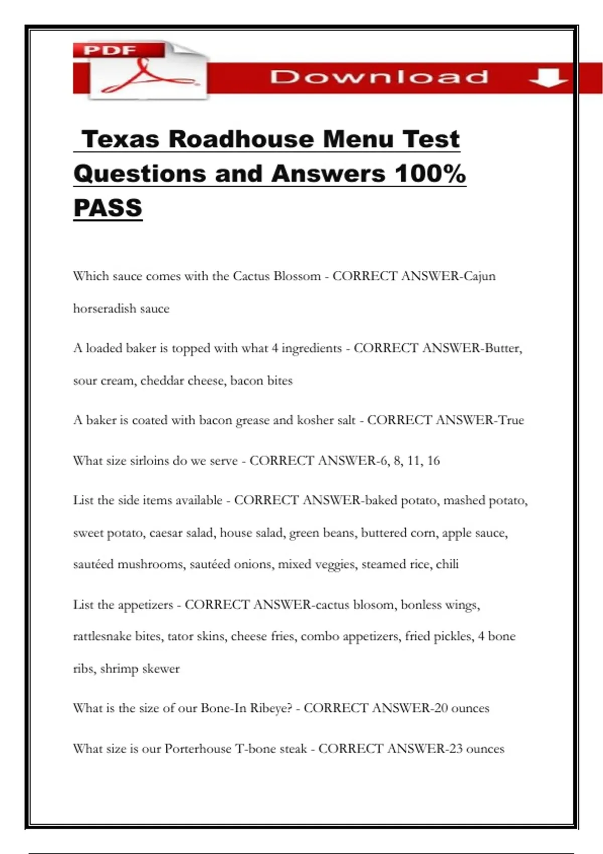 What is the Texas Roadhouse story? - CORRECT ANSWER-1. Hand cut steaks
