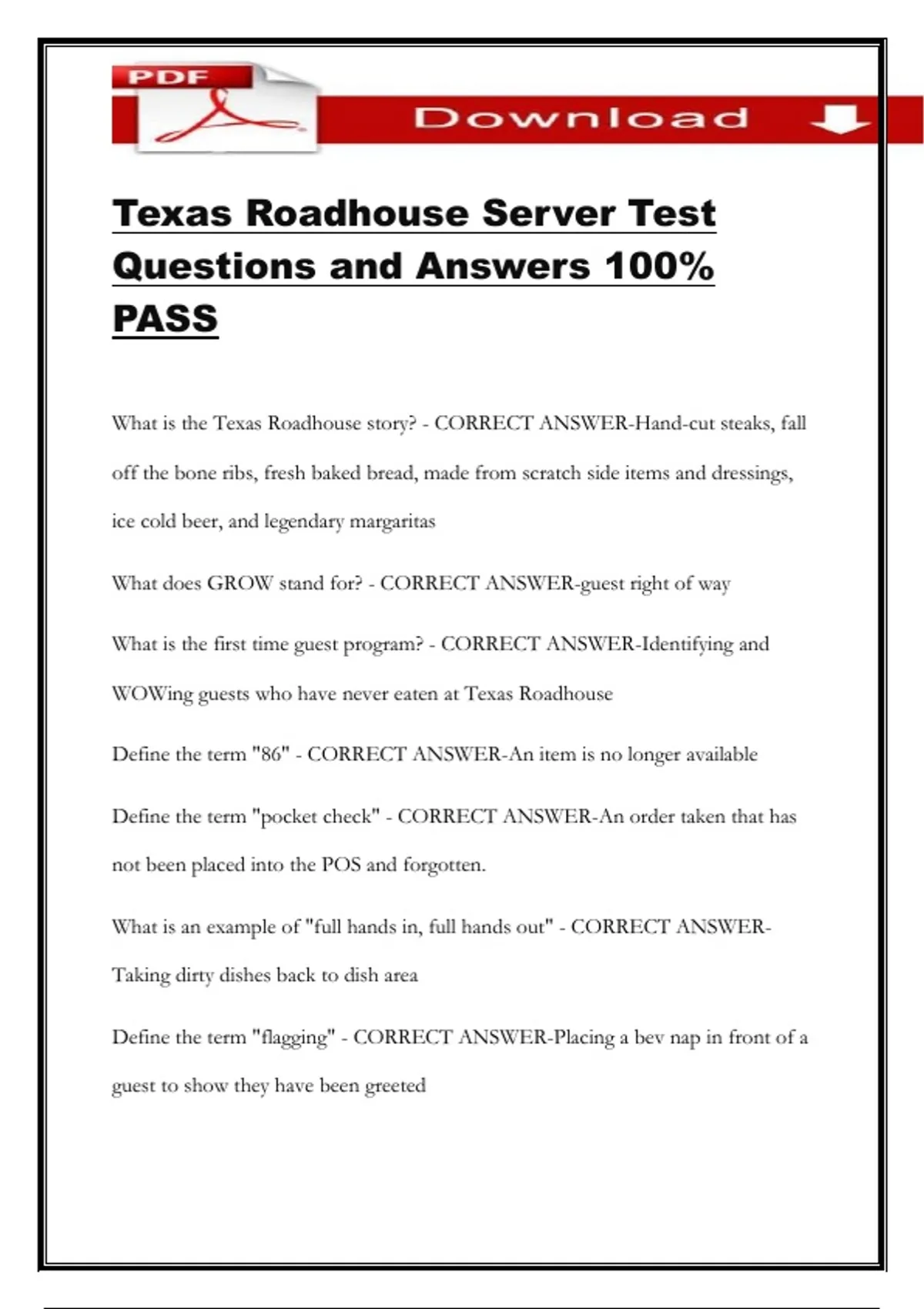 Texas Roadhouse Server Test Questions and Answers 100% PASS