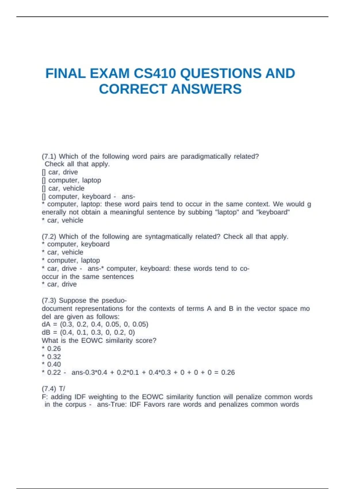 FINAL EXAM CS410 QUESTIONS AND CORRECT ANSWERS