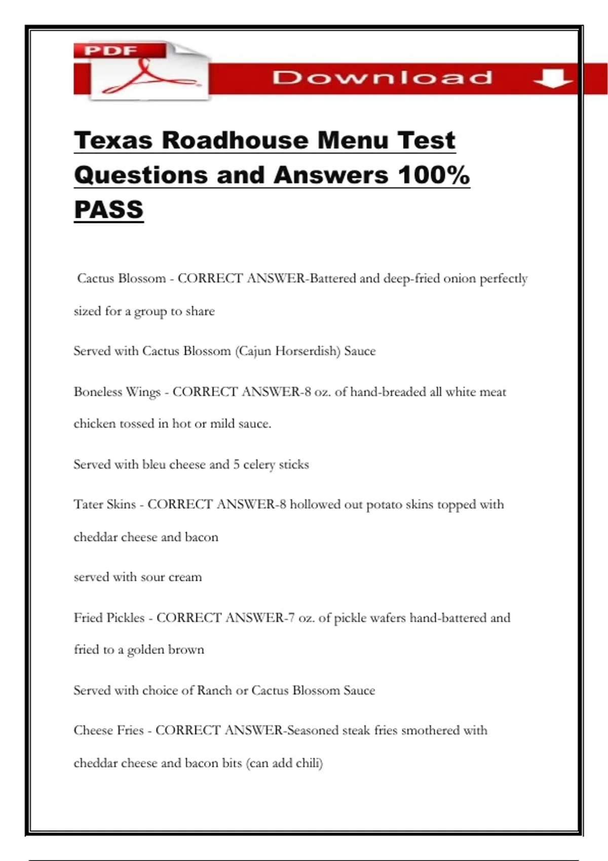 Texas Roadhouse Menu Test
