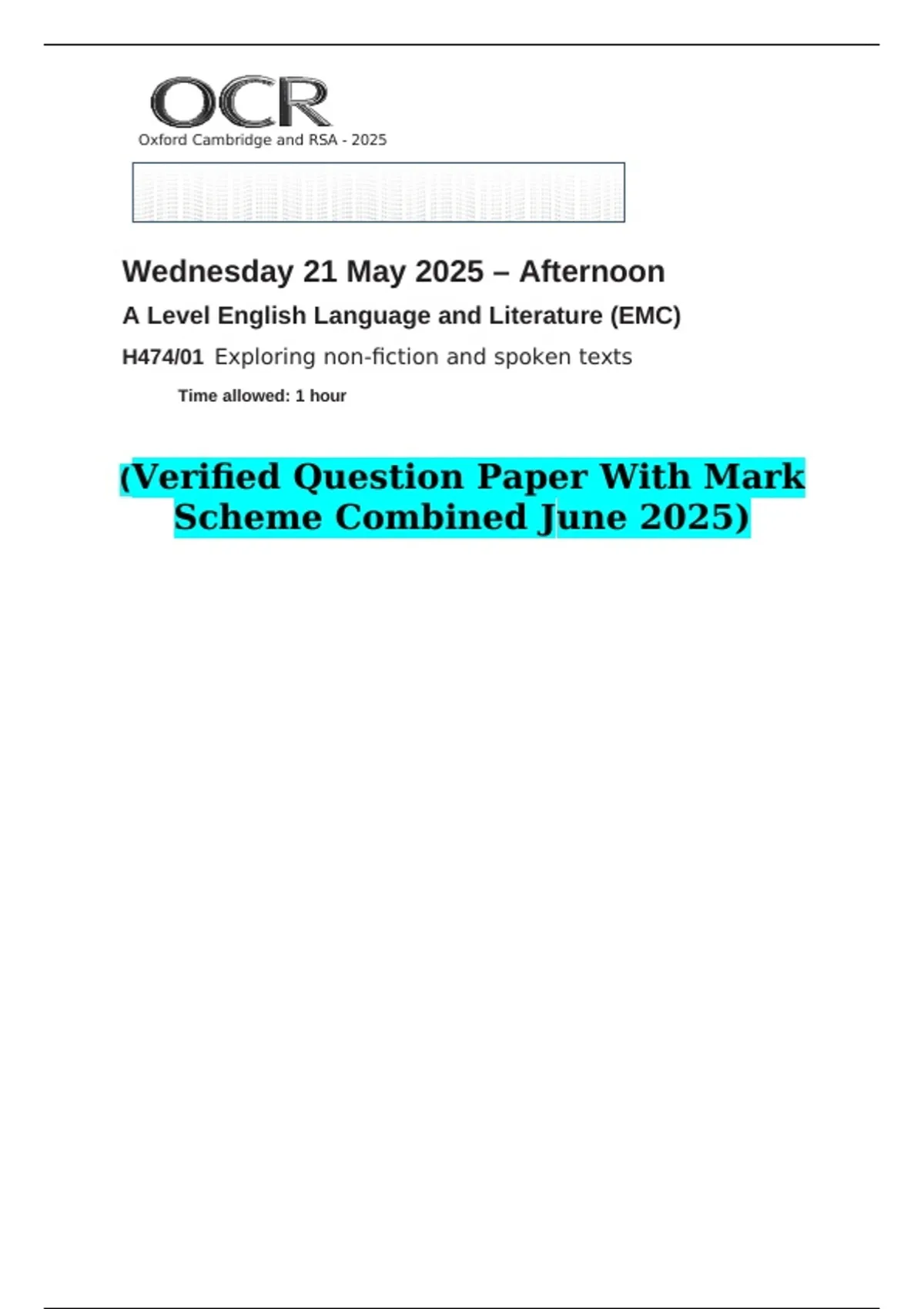 2025 A Level English Language and Literature (EMC) H474/01 Exploring non-fiction and spoken texts (Verified Question Paper With Mark Scheme Combined June 2025)