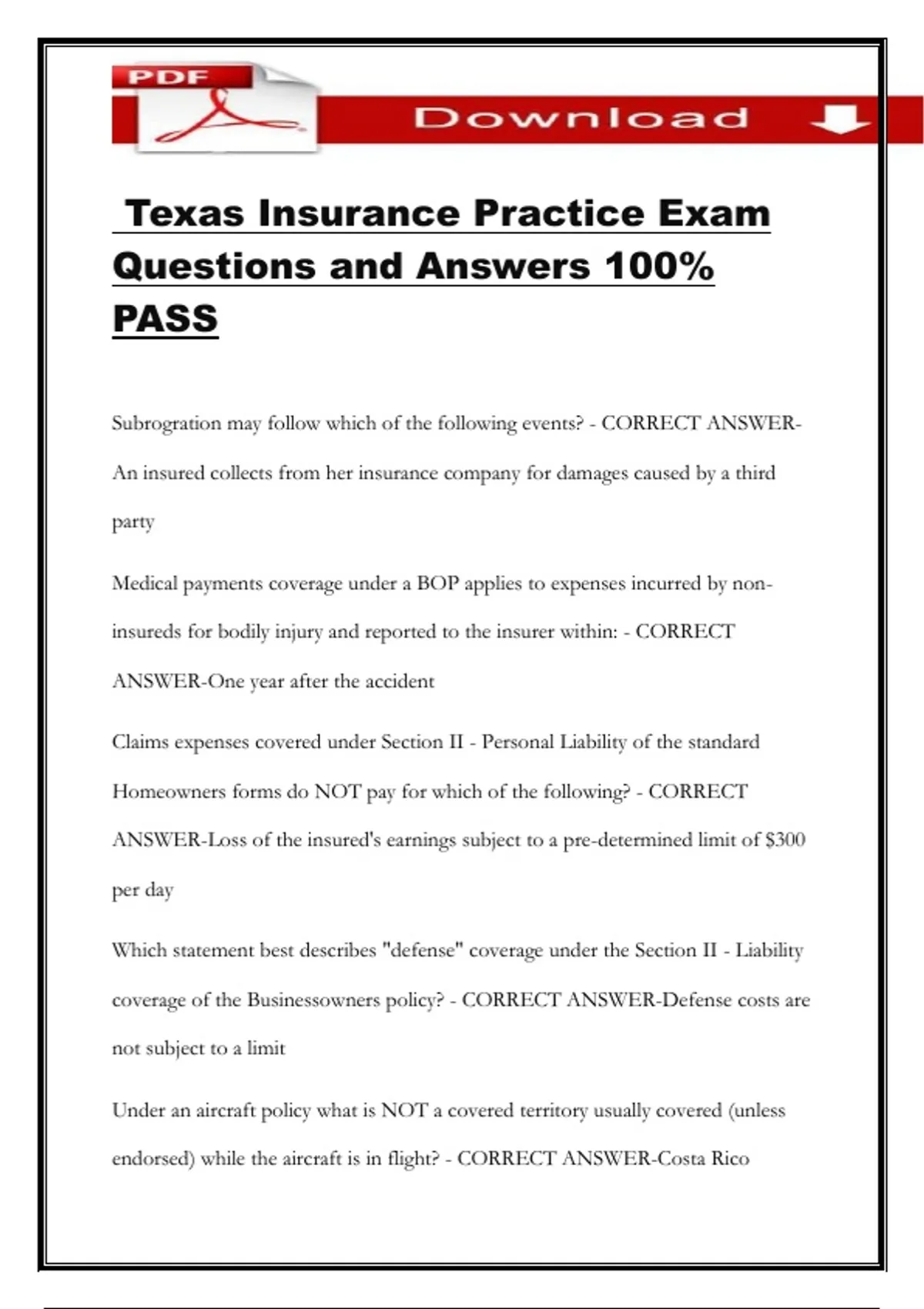 Texas Insurance Practice Exam