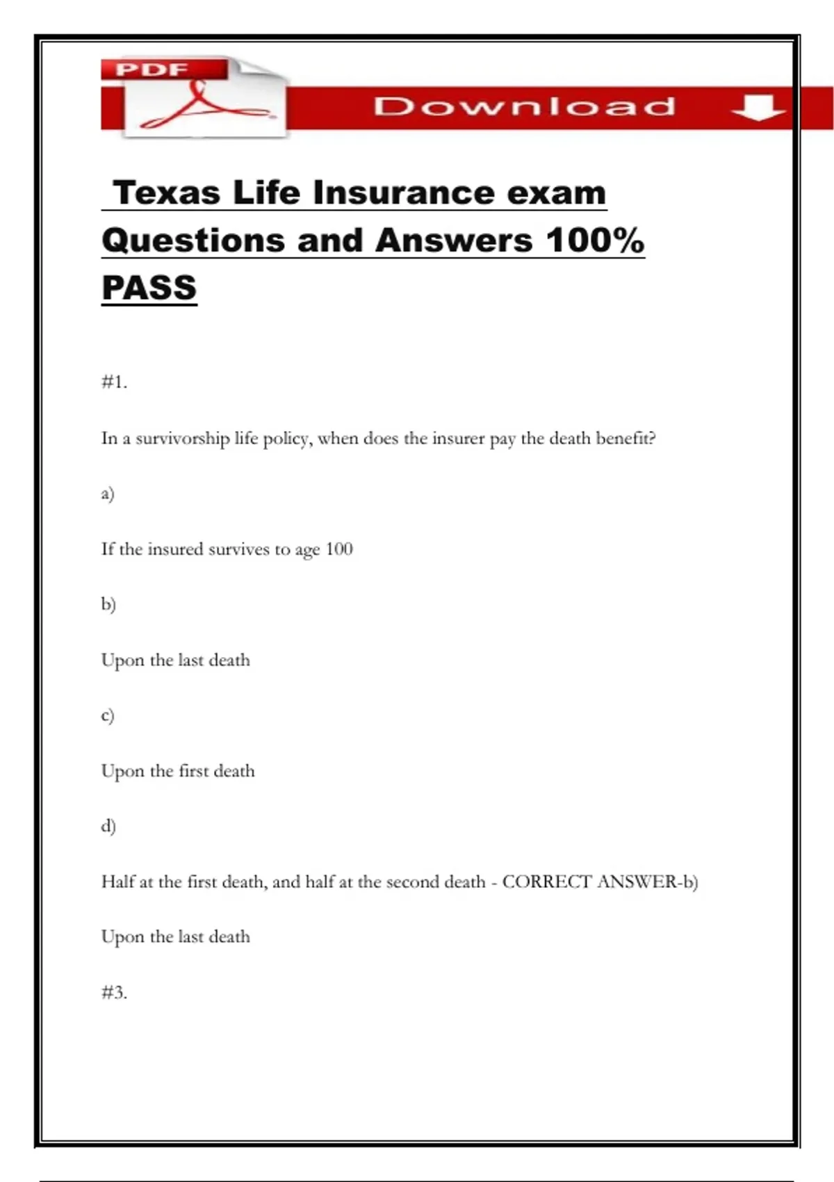Texas Life Insurance exam Questions and Answers 100% PASS