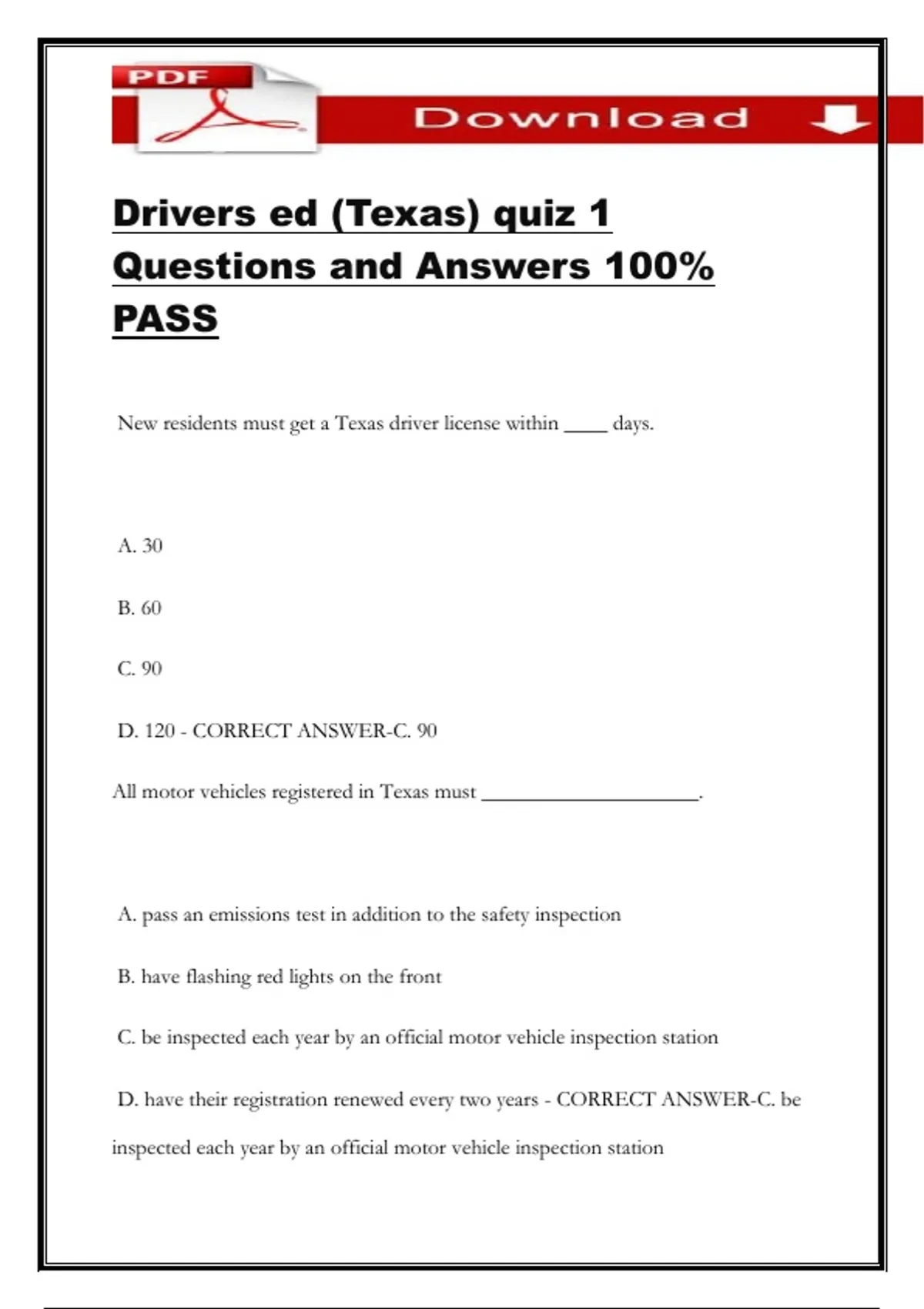 Drivers ed (Texas) quiz 1 Questions and Answers 100% PASS