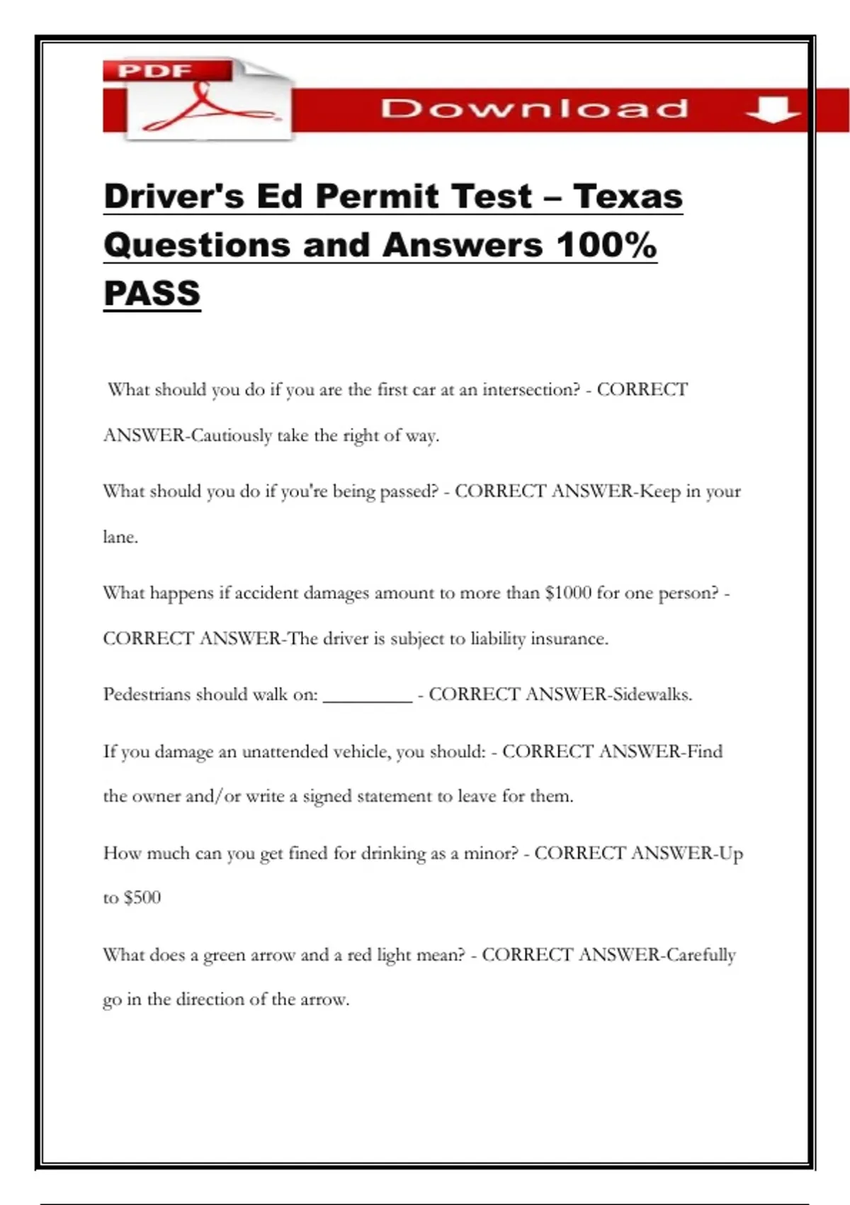 Driver's Ed Permit Test – Texas Questions and Answers 100% PASS