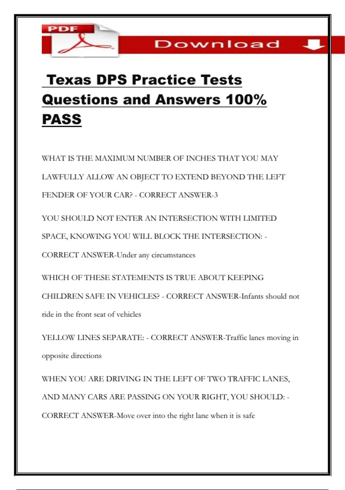 Texas DPS Practice Tests Questions and Answers 100% PASS