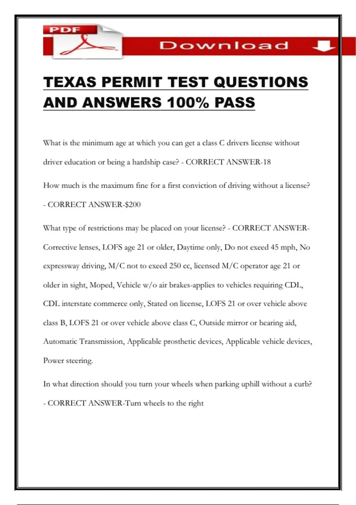 TEXAS PERMIT TEST QUESTIONS