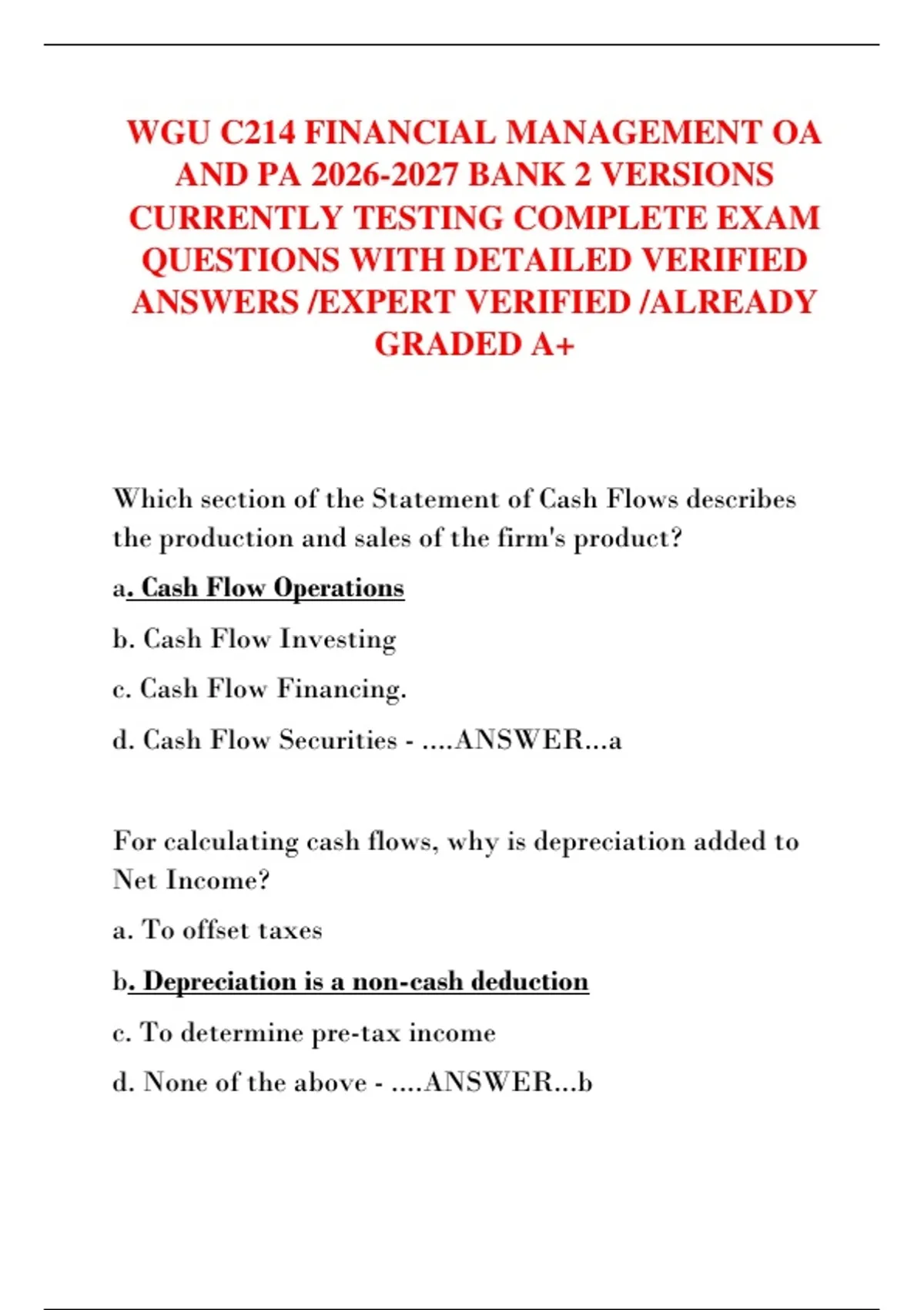a. Cash Flow Operations