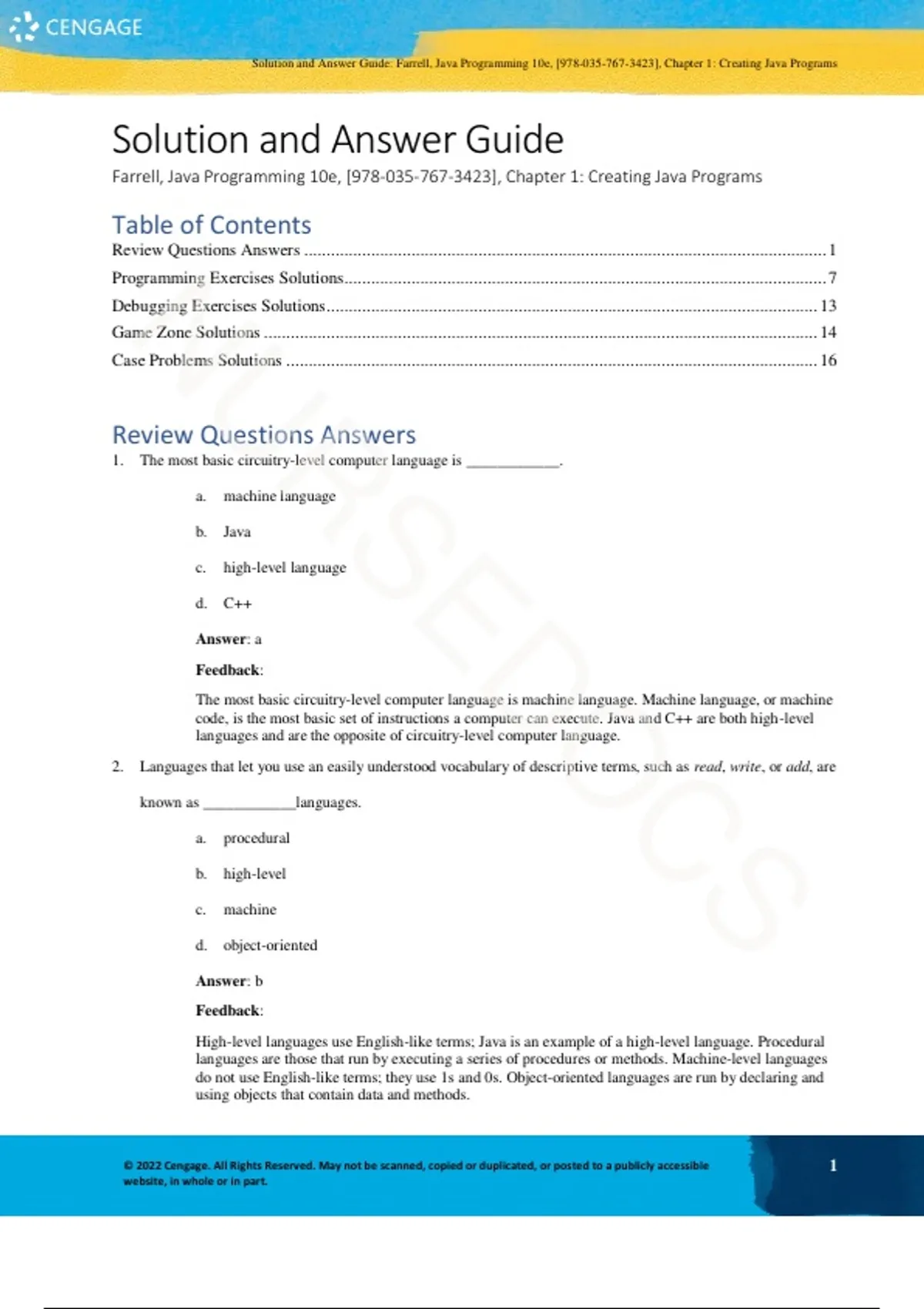 Chapter 1 Solution & Answer Manual – Creating Java Programs (Farrell, Java Programming 10th Edition) ISBN: 978-035-767-3423 | Exam Preparation Guide