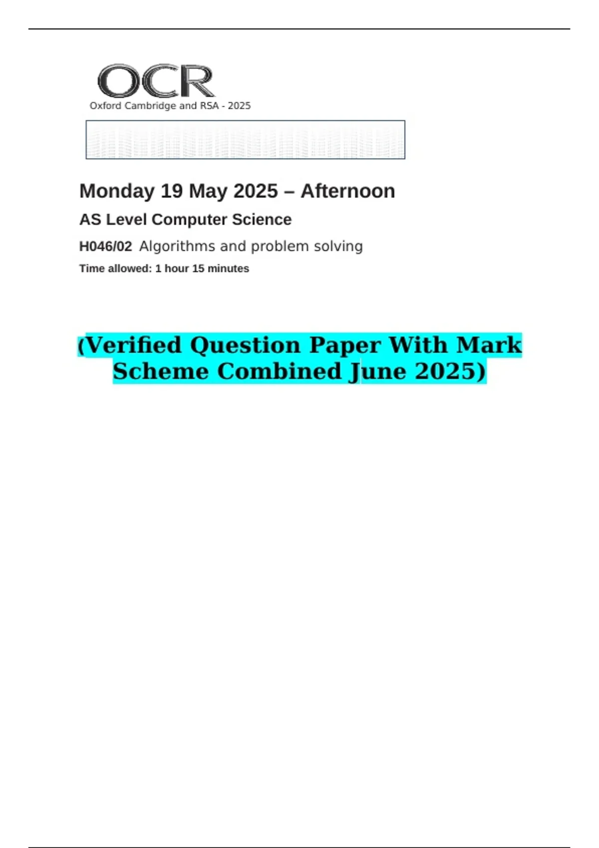 H046/02 Algorithms and problem solving
