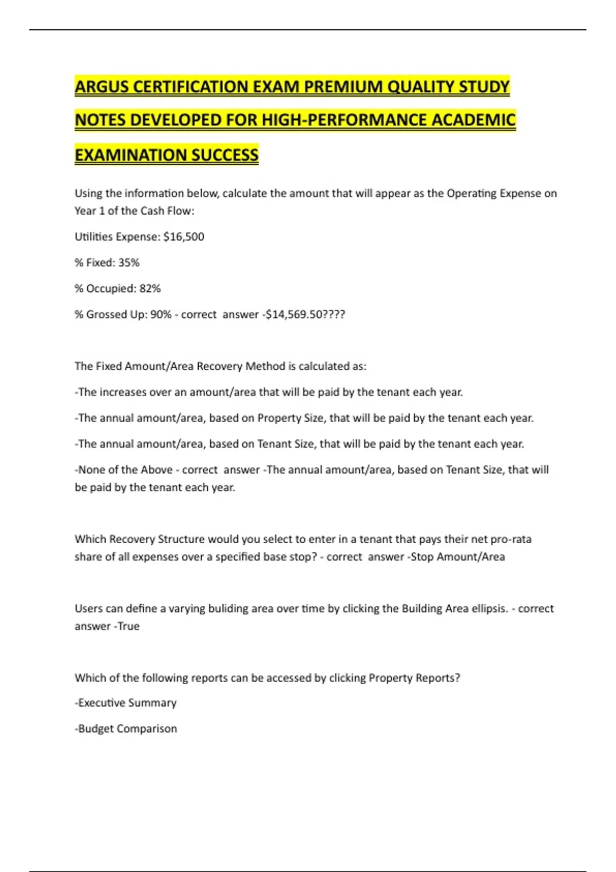 ARGUS CERTIFICATION EXAM PREMIUM QUALITY STUDY