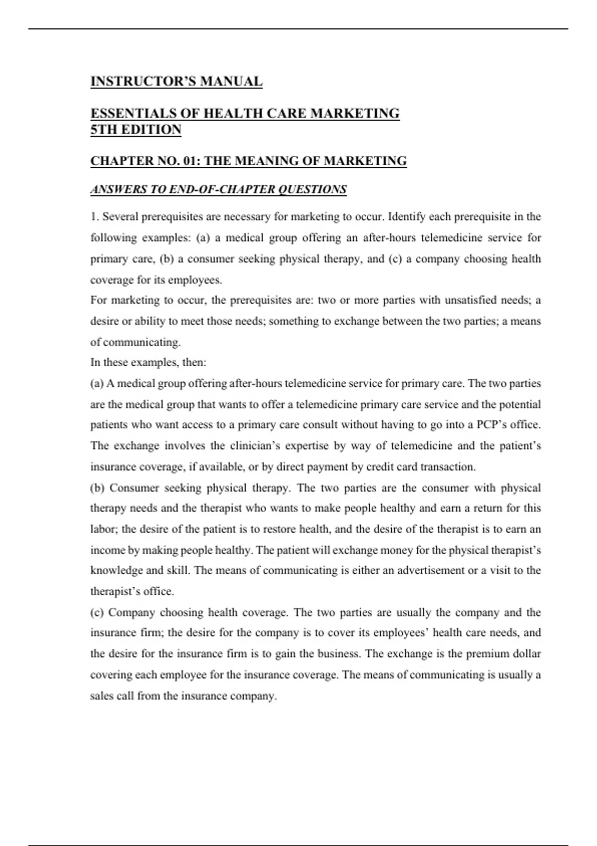 This document is the Instructor’s Manual for Essentials of Health Care Marketing, 5th Edition by Eric N. Berkowitz. It provides comprehensive teaching support. The manual is fully aligned with the 5th edition textbook and is designed for instructors teaching undergraduate or graduate health care marketing courses. Ideal for lesson planning, exam preparation, and classroom discussion facilitation.
