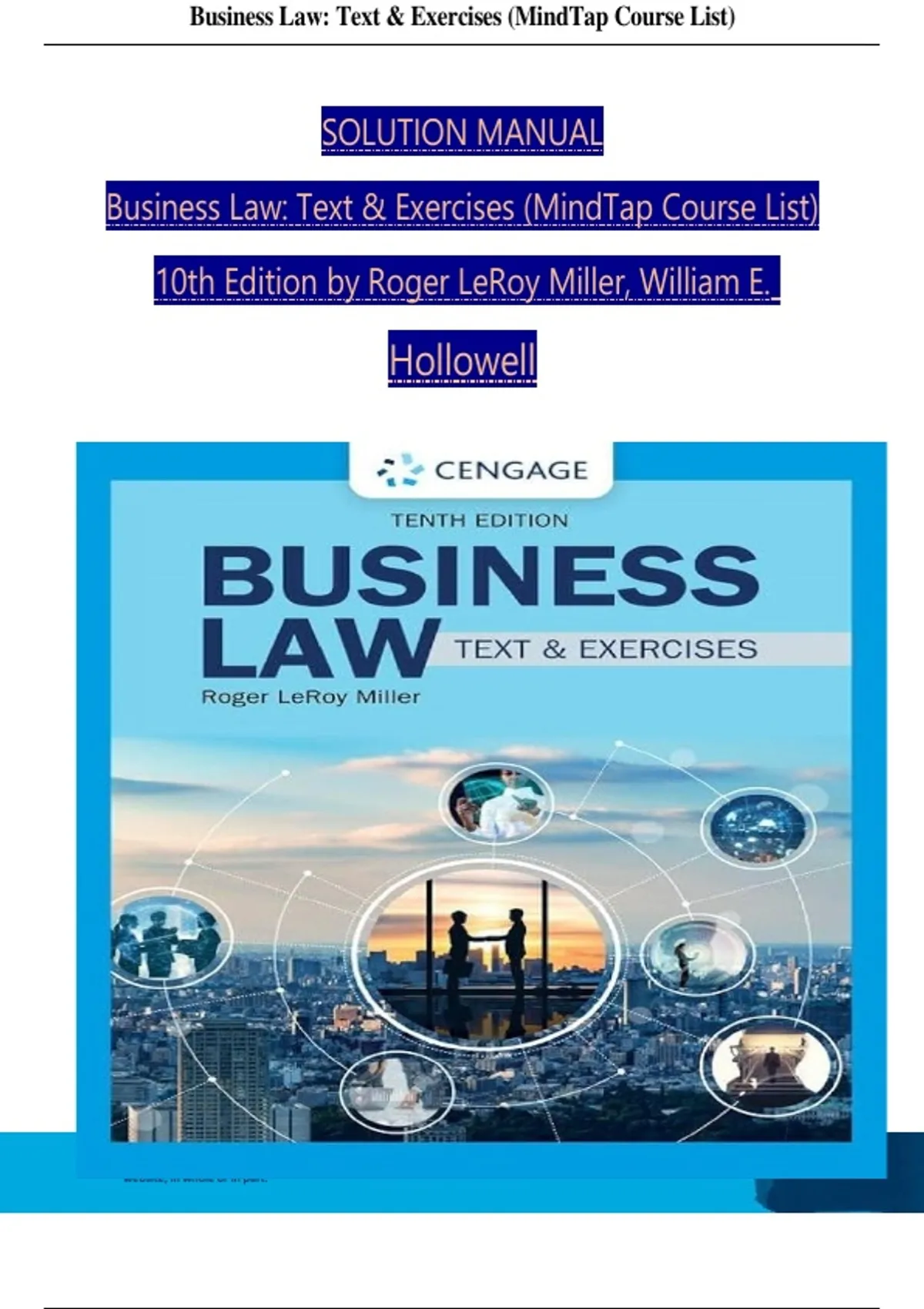 Business Law: Text & Exercises 10th Edition Solution Manual by Roger Miller – Latest Update 2026 Exam Prep | Graded A+