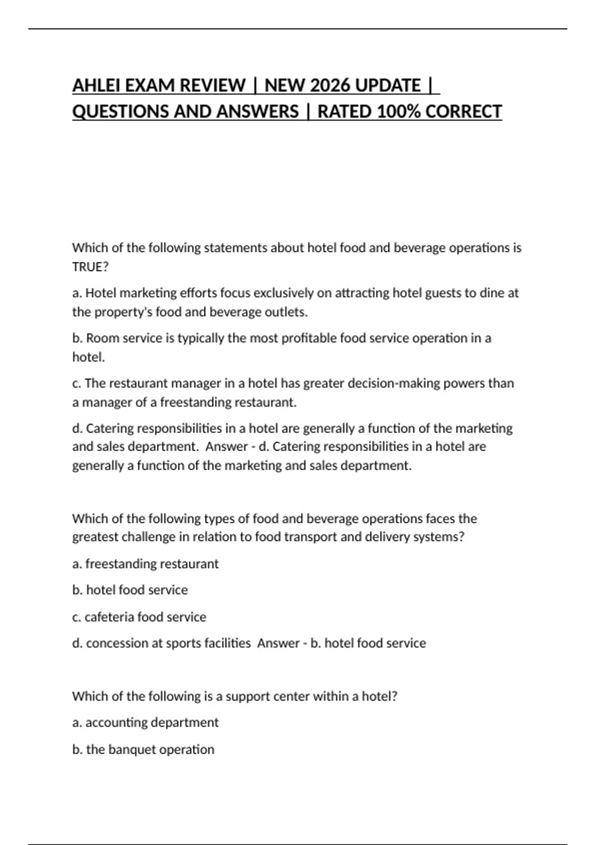 AHLEI EXAM REVIEW | NEW 2026 UPDATE | QUESTIONS AND ANSWERS | RATED 100% CORRECT