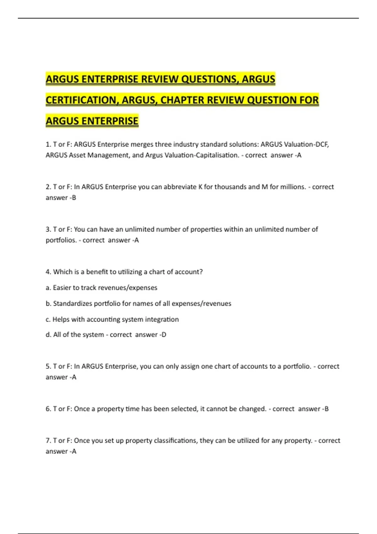 ARGUS ENTERPRISE REVIEW QUESTIONS, ARGUS