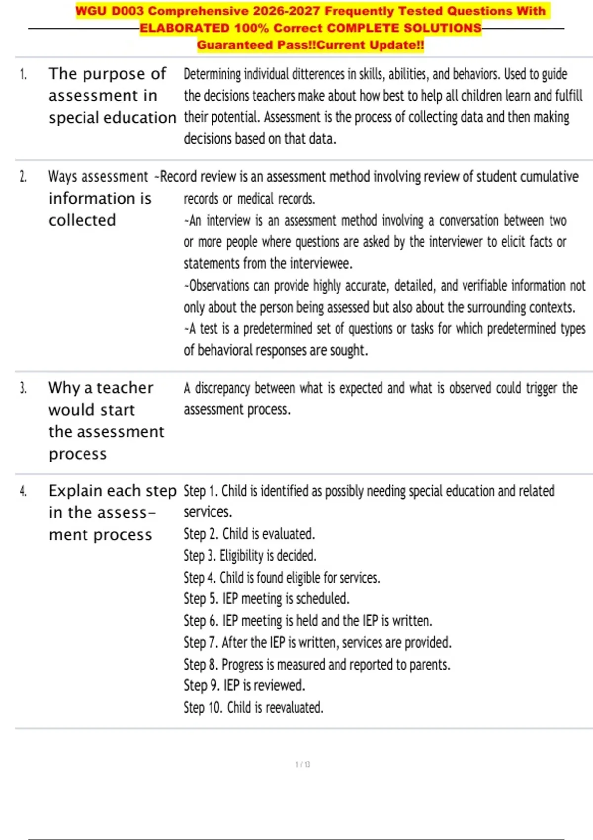 , WGU D003 Comprehensive 2026-2027 Frequently Tested Questions With