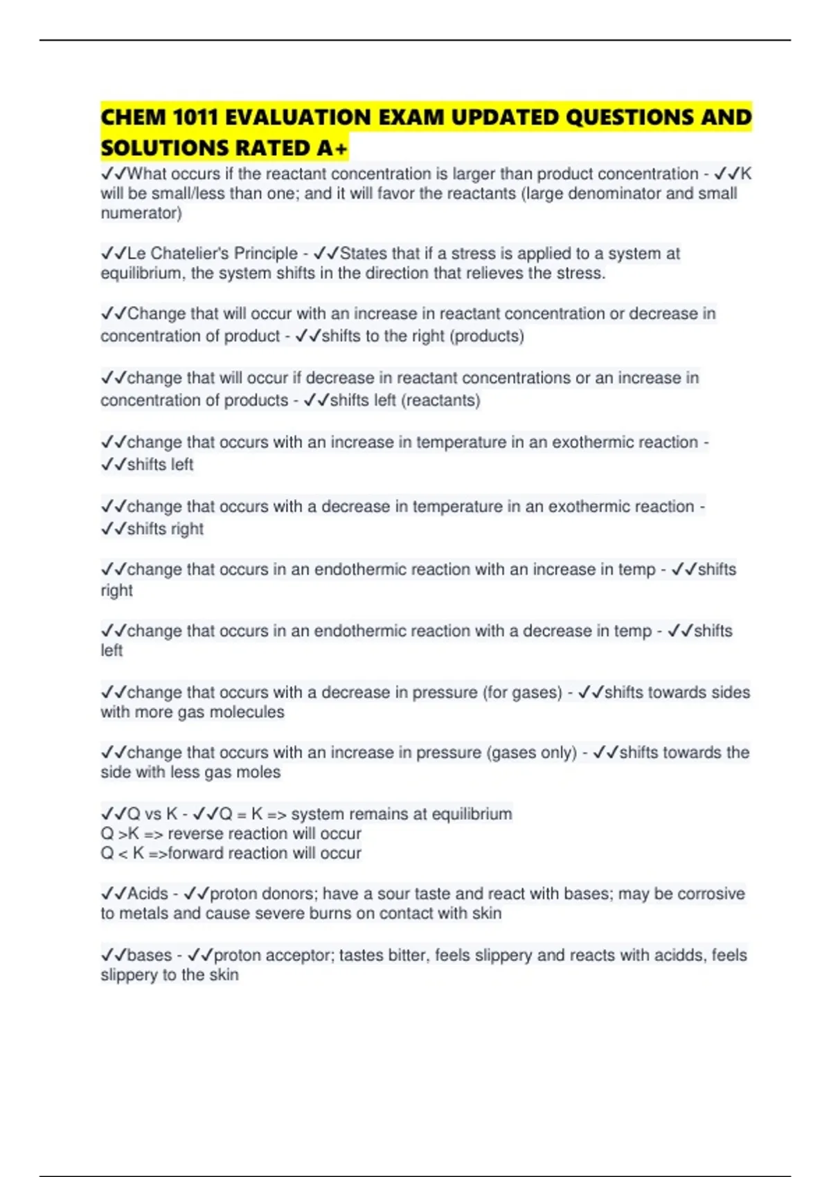 CHEM 1011 EVALUATION EXAM UPDATED QUESTIONS AND