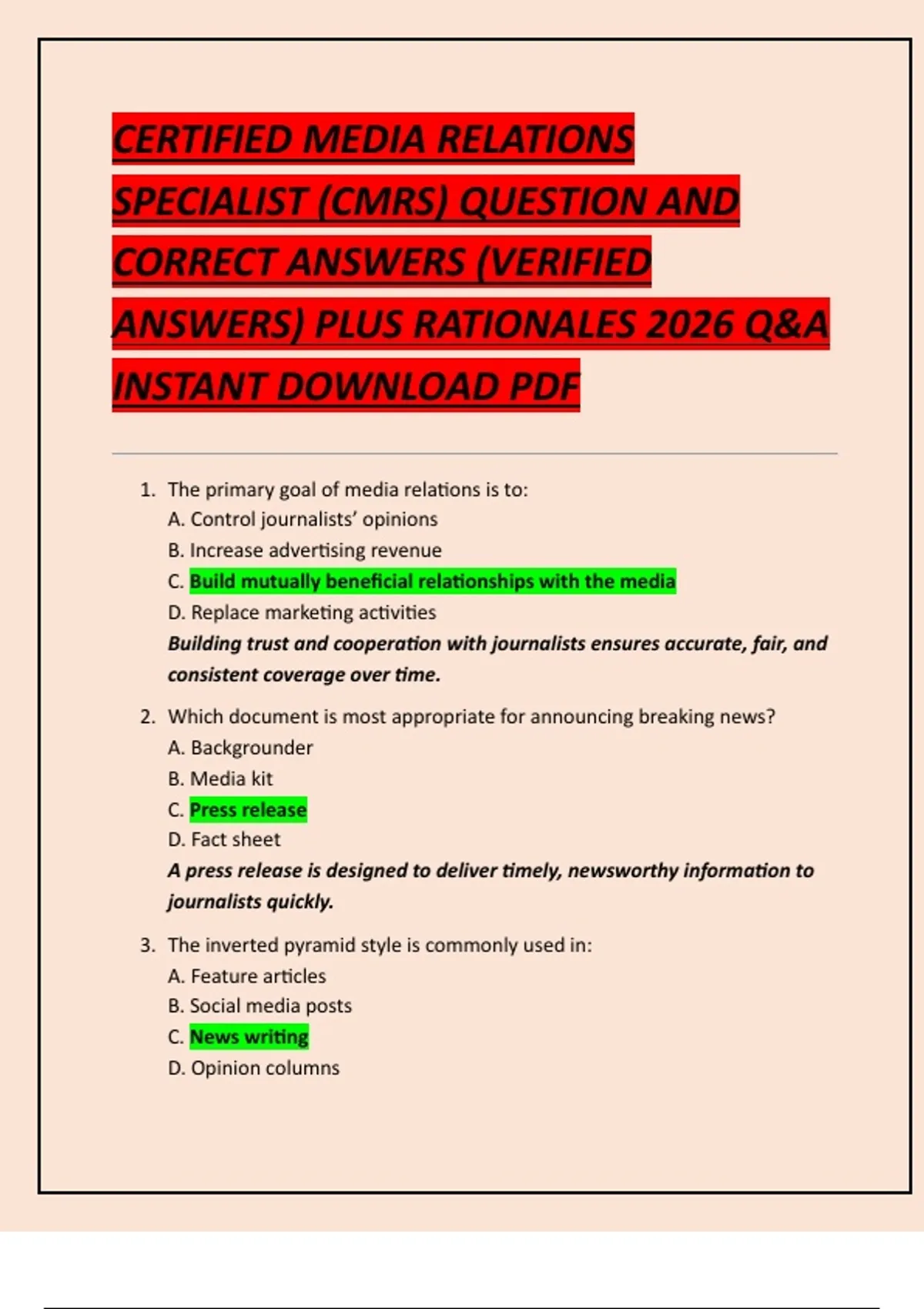 ANSWERS) PLUS RATIONALES 2026 Q&A