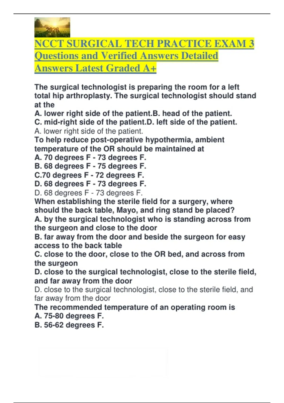 NCCT SURGICAL TECH PRACTICE EXAM 3