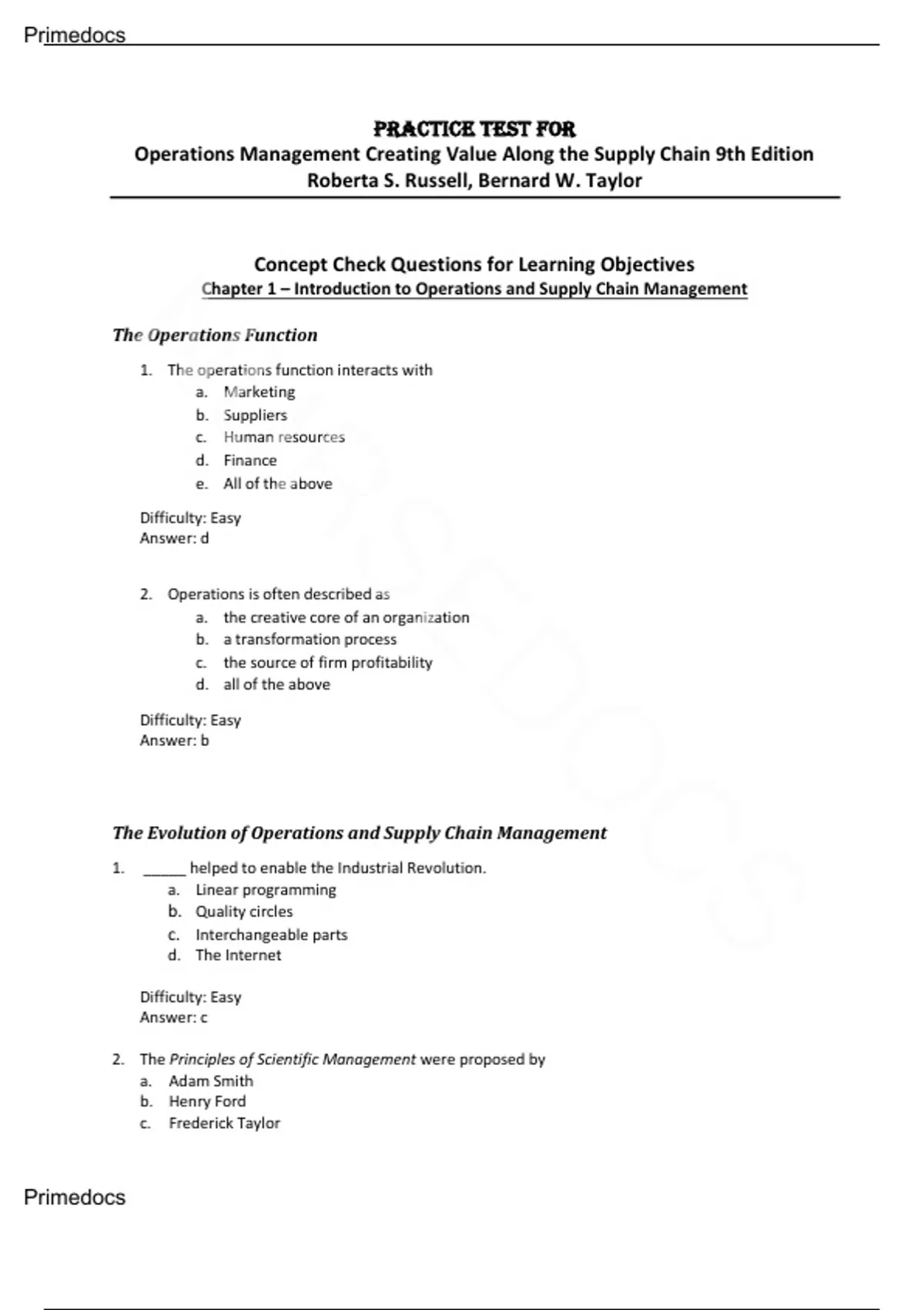 TEST BANK with Answer Guide – Operations Management: Creating Value Along the Supply Chain 9th Edition | Comprehensive Exam Prep Resource | Latest Edition