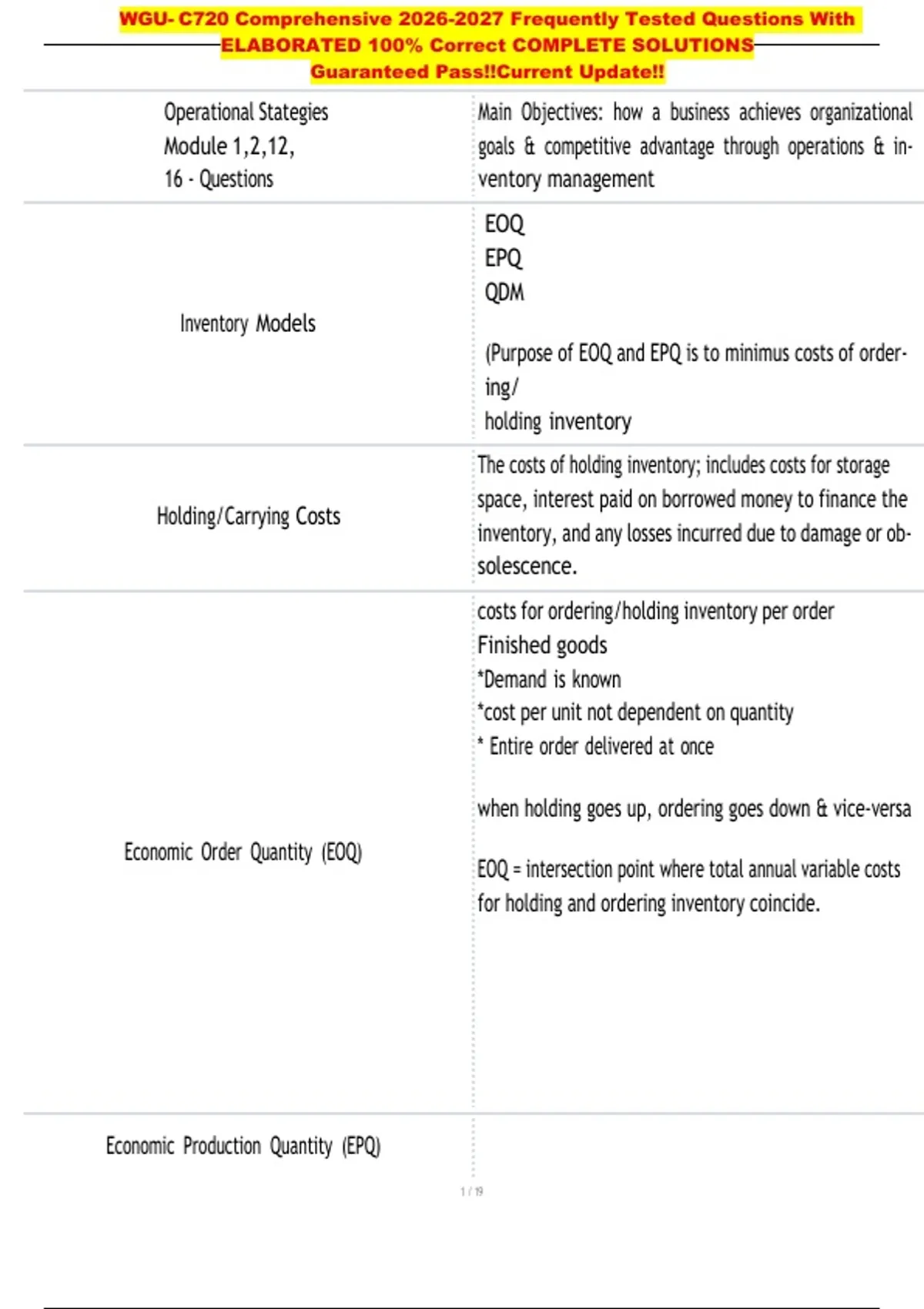 , WGU- C720 Comprehensive 2026-2027 Frequently Tested Questions With
