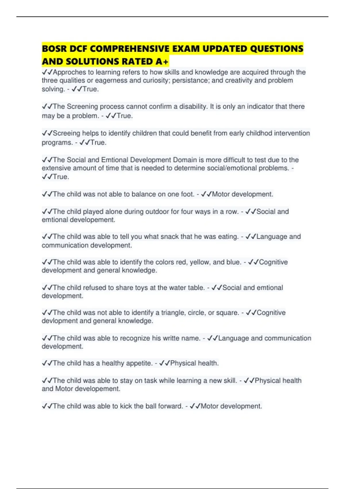 BOSR DCF COMPREHENSIVE EXAM UPDATED QUESTIONS AND SOLUTIONS RATED A+