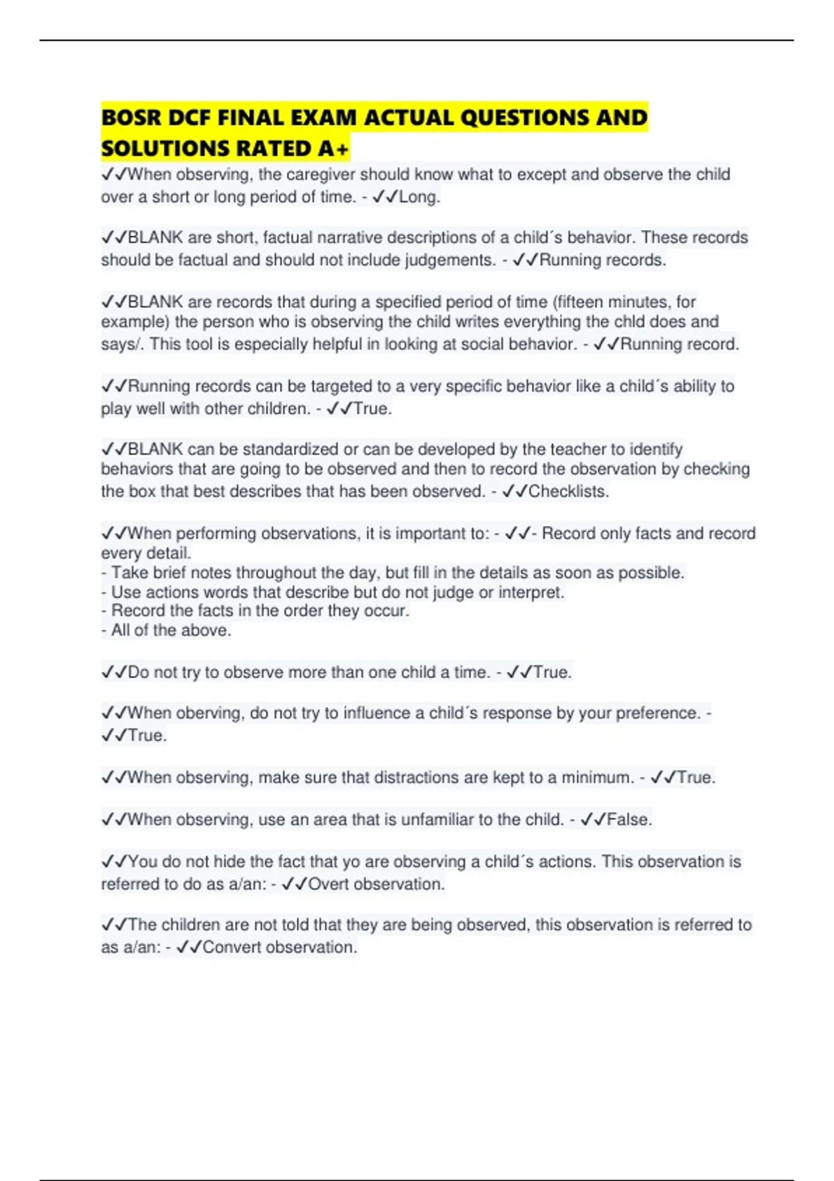 ✔✔When observing, make sure that distractions are kept to a minimum. - ✔✔True.