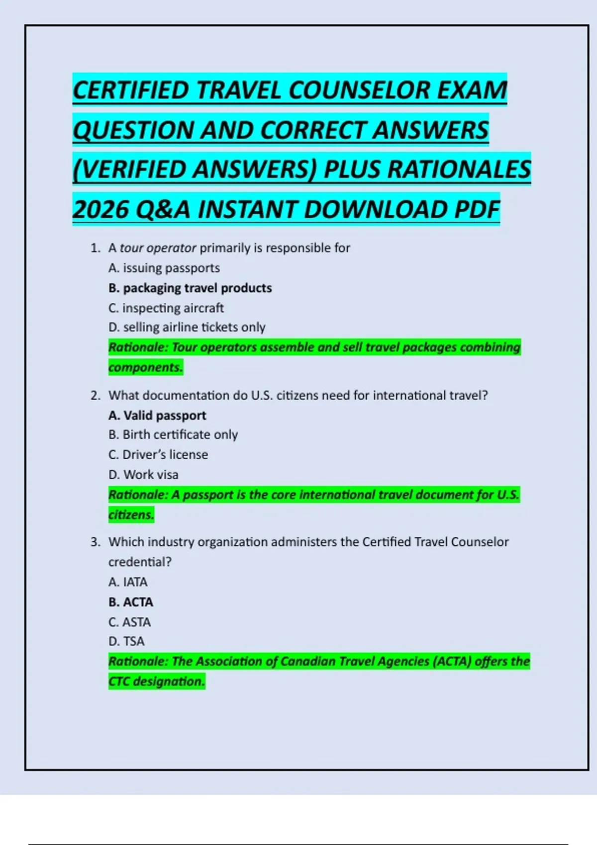 CERTIFIED TRAVEL COUNSELOR EXAM
