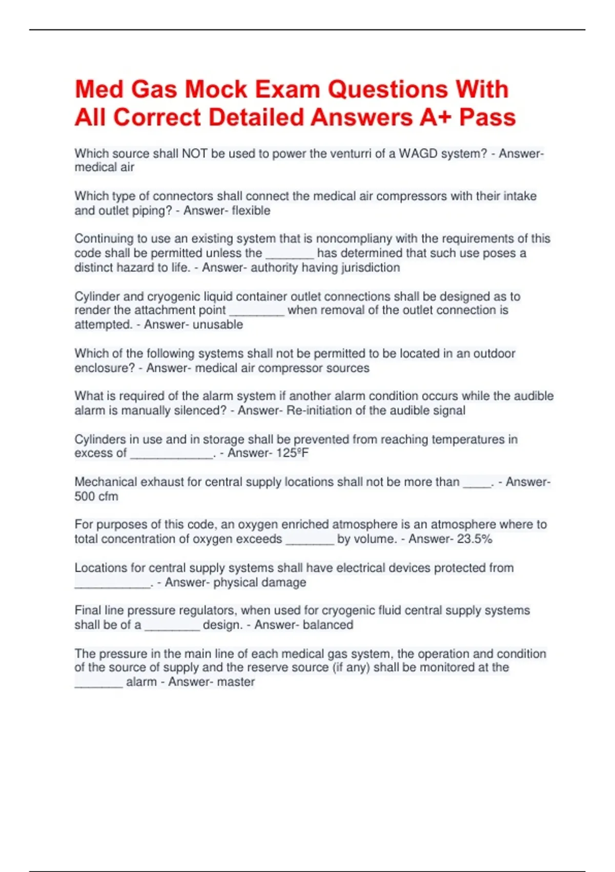 Med Gas Mock Exam Questions With All Correct Detailed Answers A+ Pass