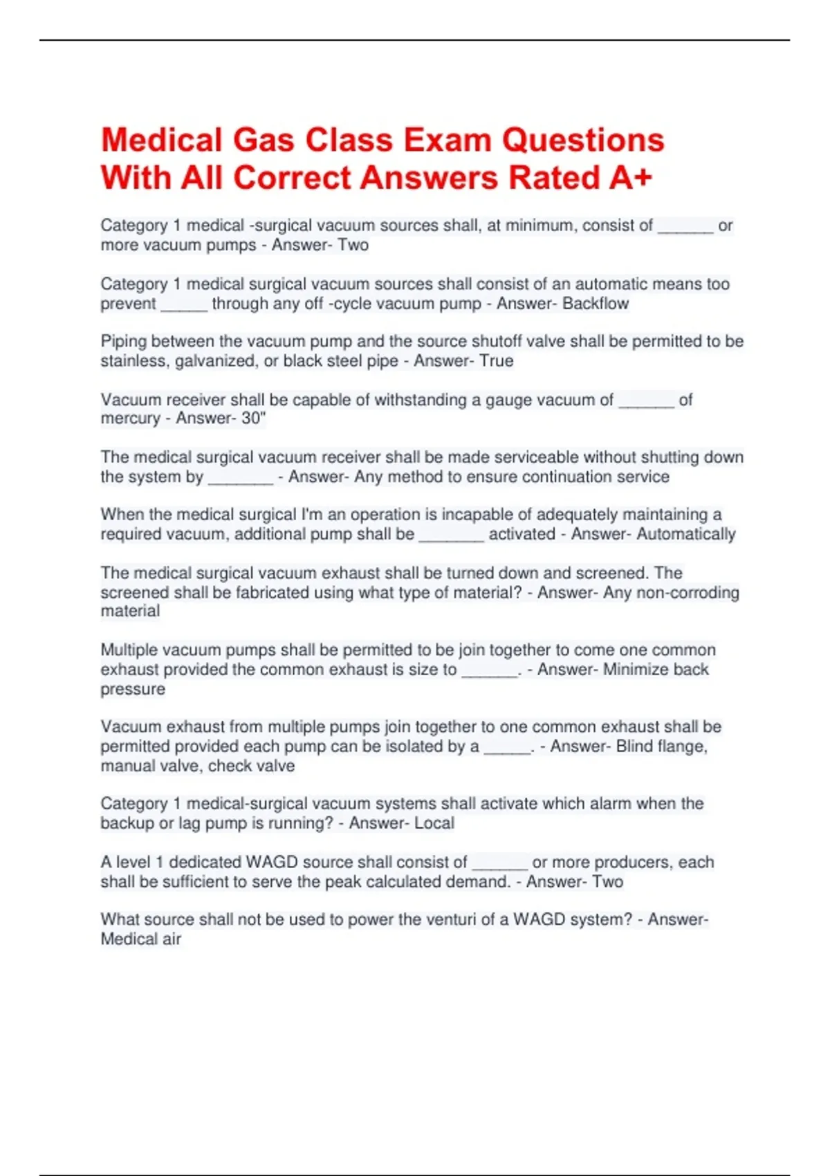 Medical Gas Class Exam Questions With All Correct Answers Rated A+