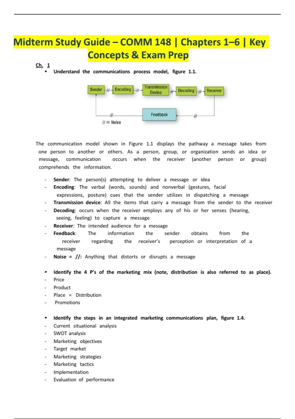 Midterm Study Guide – COMM 148 | Chapters 1–6 | Key Concepts & Exam Prep