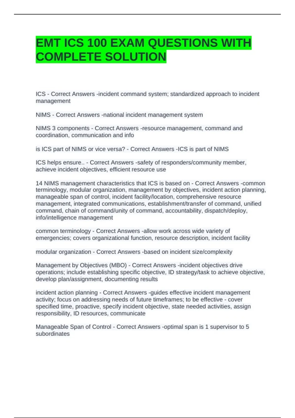 ICS - Correct Answers -incident command system; standardized approach to incident