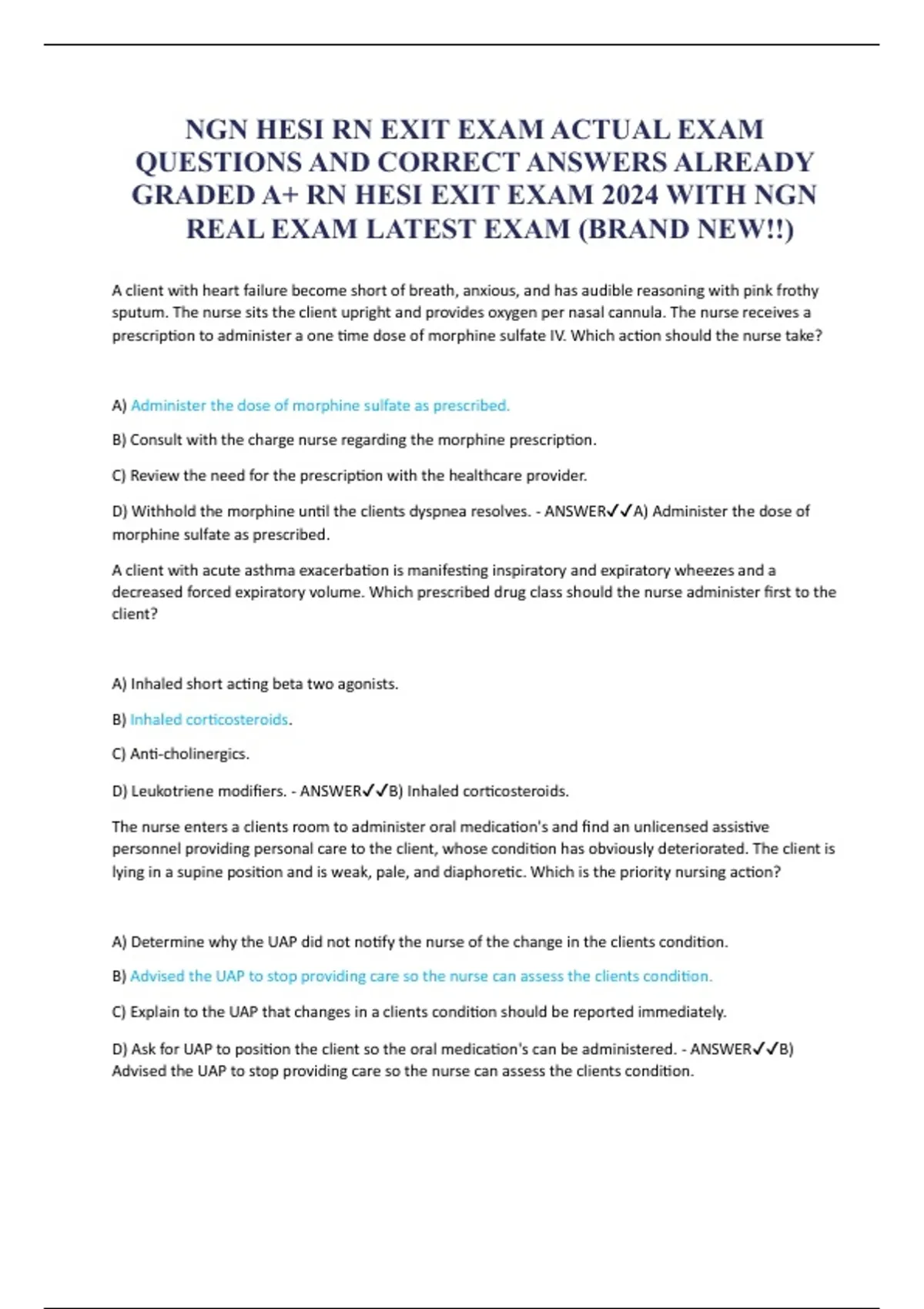 GRADED A+ RN HESI EXIT EXAM 2024 WITH NGN