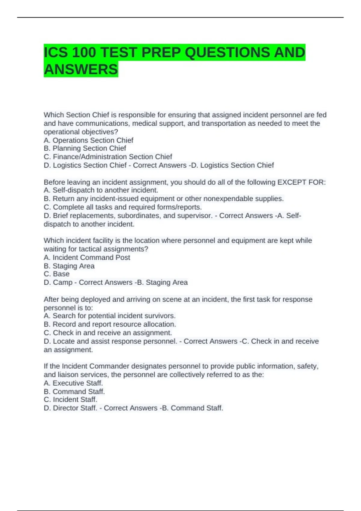 D. Logistics Section Chief - Correct Answers -D. Logistics Section Chief