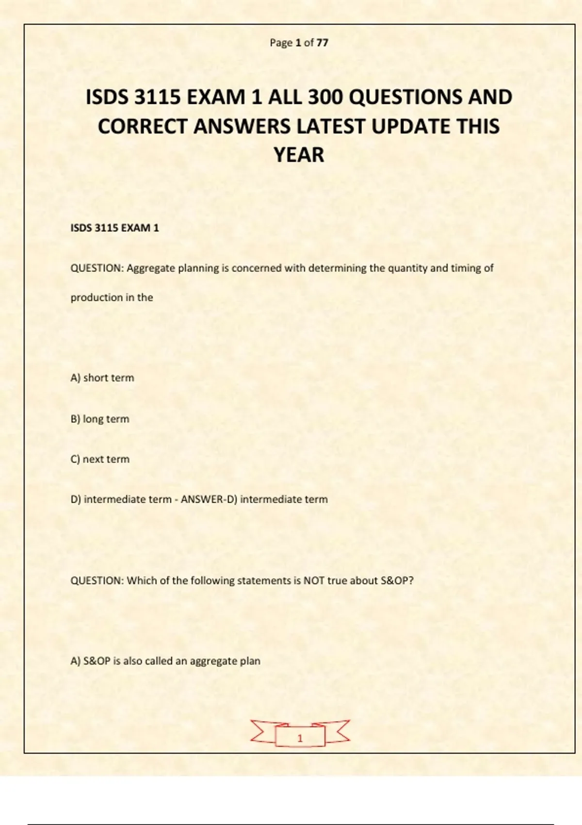 ISDS 3115 EXAM 1 ALL 300 QUESTIONS AND