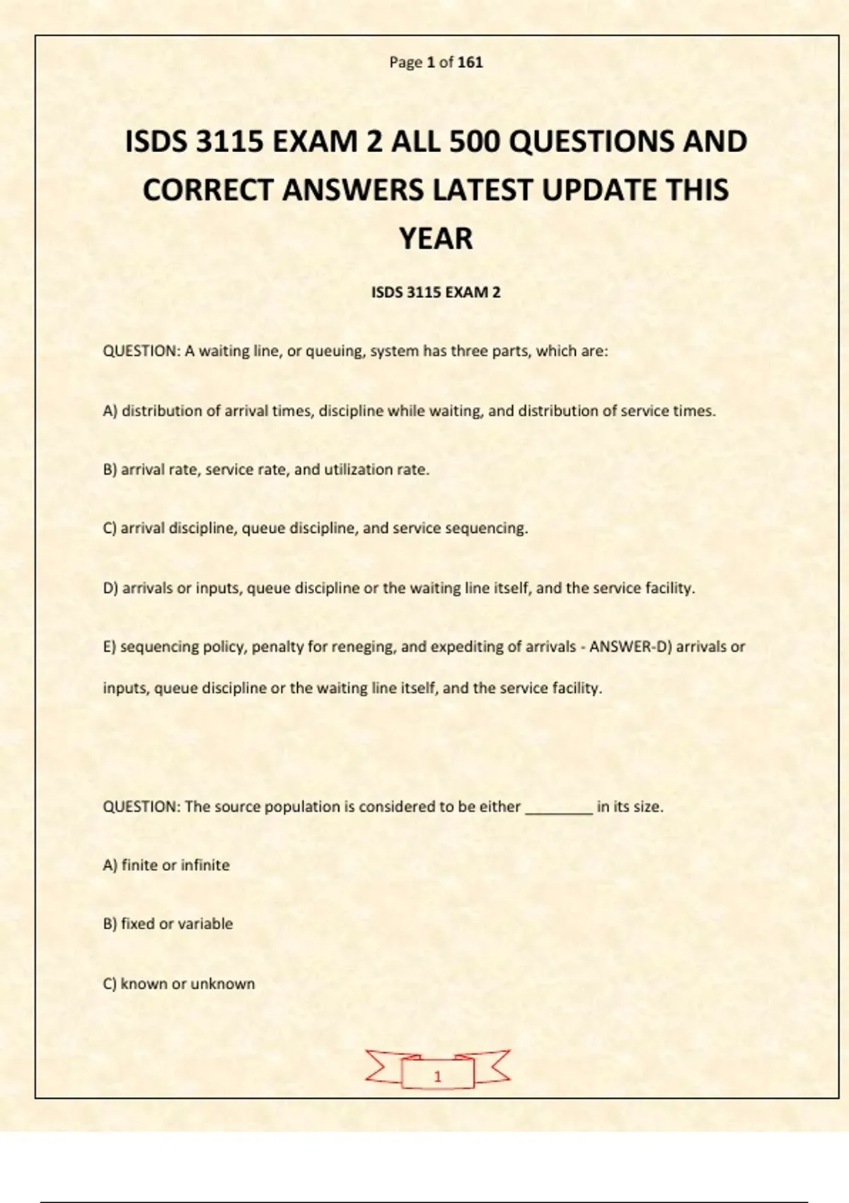 ISDS 3115 Exam 2 – All 500 Questions and Correct Answers (Latest Update This Year) is a fully updated, comprehensive study resource for students preparing for ISDS 3115 Exam 2. It includes all 500 exam-style questions with correct answers, aligned with current course objectives, statistical concepts, and academic standards. Coverage includes probability theory, statistical inference, regression analysis, hypothesis testing, data analysis techniques, and practical applications. Each question is designed to reinforce understanding, strengthen exam readiness, and boost confidence. Ideal for students, educators, and exam candidates, this guide ensures complete review, effective practice, and confident performance on exam day.